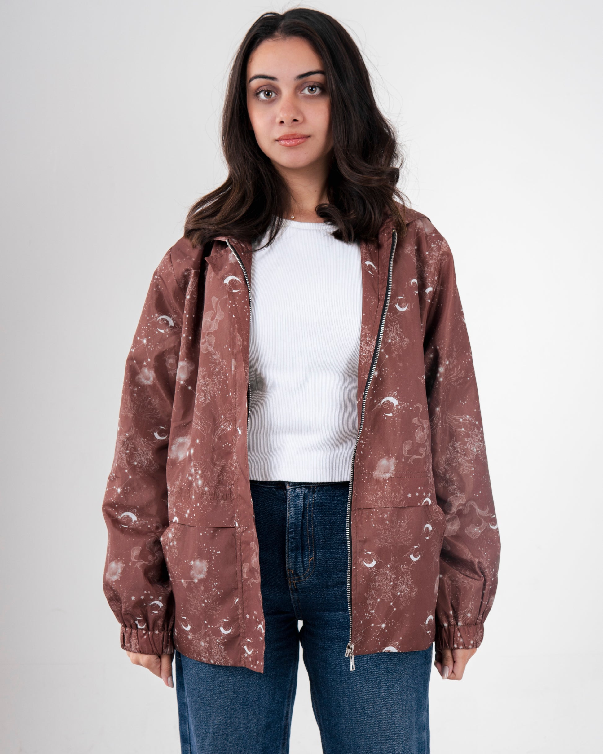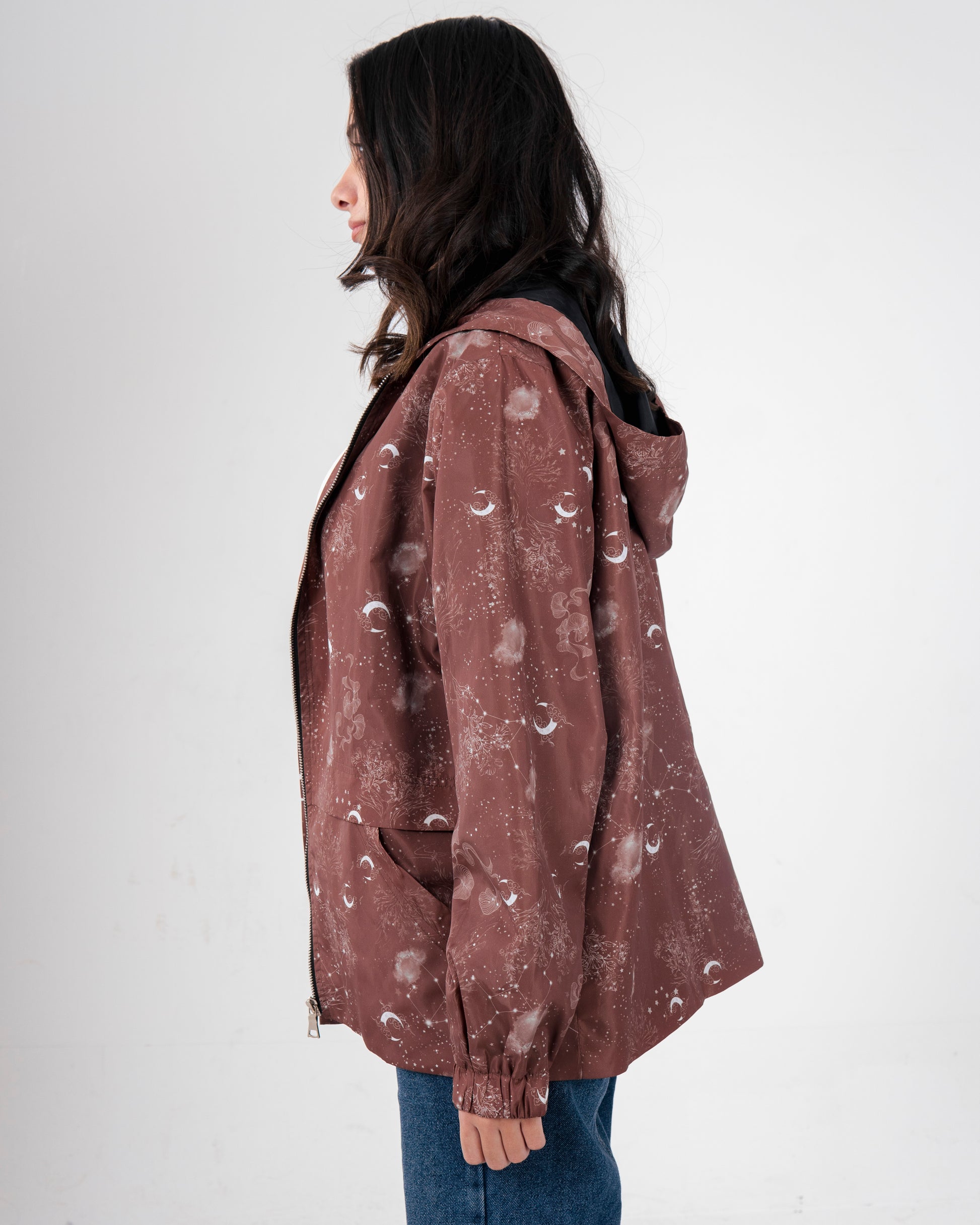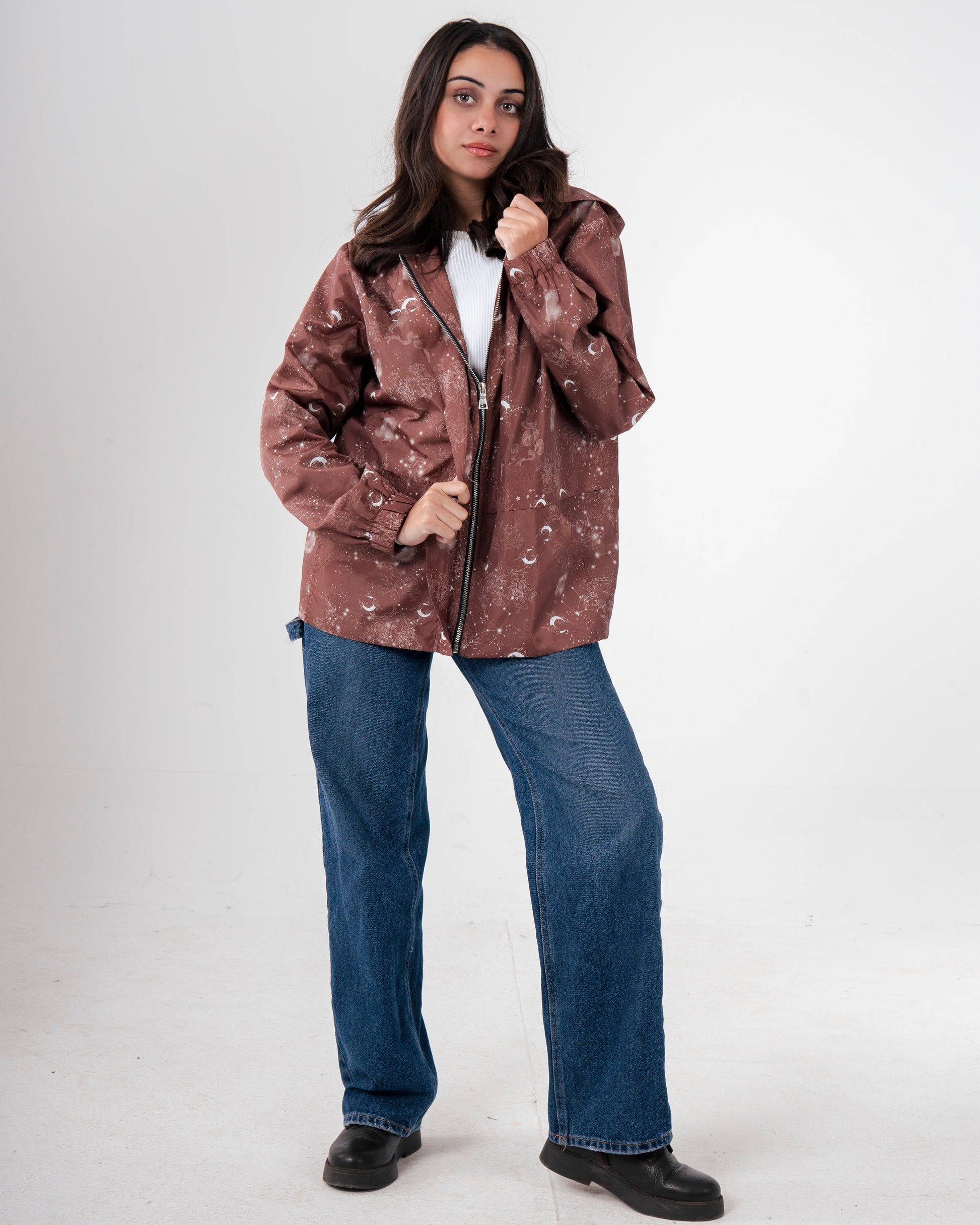 A lightweight waterproof jacket printed with the Celestial pattern in warm brown tones. Designed to be worn in winter or any season it’s light enough for layering, yet protective on rainy days.Made in small batches with a subtle starry touch.