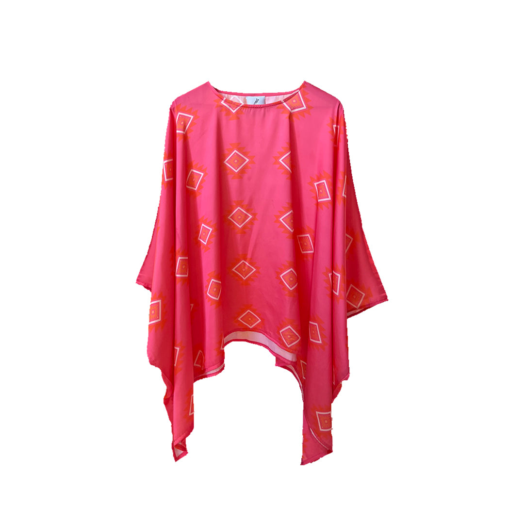 Poncho soft satin fabric with a significant print.