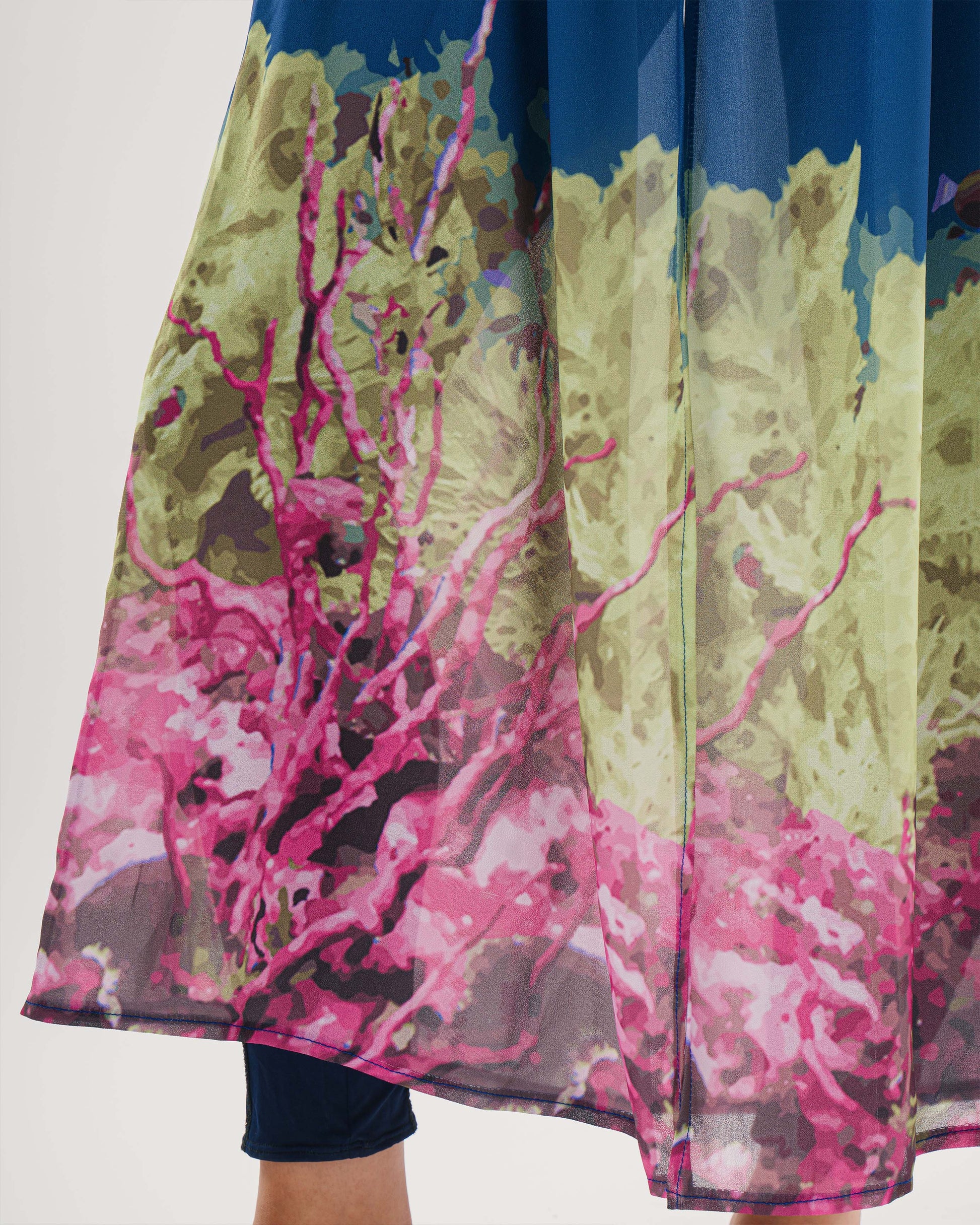 A lightweight coverup featuring the bold Koral print, inspired by the fluid beauty of coral reefs. Breezy, effortless, and designed for days by the sea throw it over your swimsuit or style it for sunset strolls.